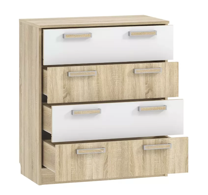 Комод «Фанк» - идеально подходит для обустройства комнаты подростка. Светлые тона мебели, выдержанный стиль прекрасно смотрятся в любом интерьере. Четыре удобных выдвижных ящика – это огромный объем для хранения белья, предметов одежды и аксессуаров. Выдвижные ящики оснащены шариковыми направляющими полного выдвижения, равномерно распределяют вес содержимого и обеспечивают плавный бесшумный ход ящика. Комод отлично сочетается с другими моделями коллекции «Фанк».