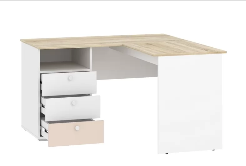 Стол письменный угловой НМ 041.41 Банни поможет оборудовать в комнате подростка комфортное и эргономичное рабочее пространство. Модель позволит задействовать обычно пустующее место в углу, освободив больше пространства для зоны отдыха. На рабочей поверхности модуля достаточно места для размещения не только письменных принадлежностей, но и ноутбука. Закругленные углы столешницы делают эксплуатацию модуля безопасной для ребенка. По окончании занятий ребенок сможет убрать книги и тетради в выдвижные ящики для поддержания порядка на рабочем месте.