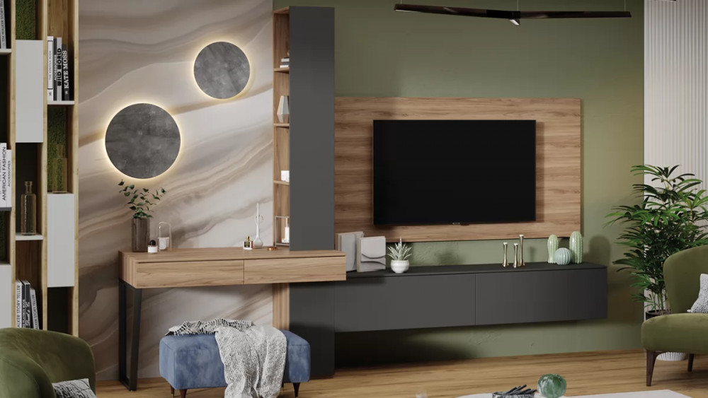 Гостиная «Порто» №8 Яблоня Беллуно, Графит софт в Сургуте