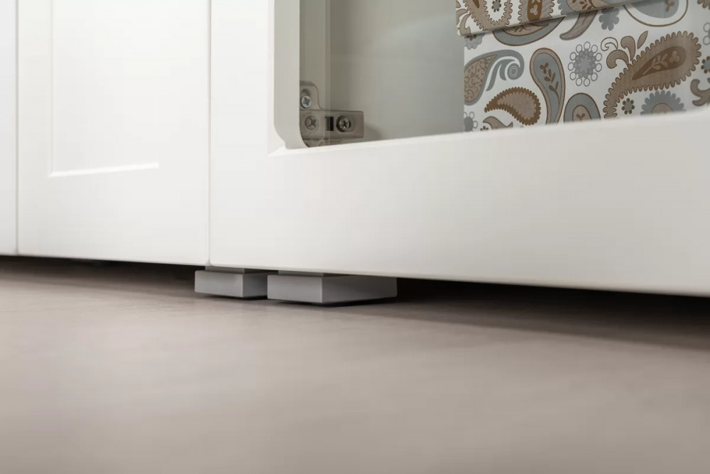 Петли и направляющие c доводчиками обеспечивают удобство и комфорт. Регулируемые опоры позволяют легко компенсировать неровности пола.