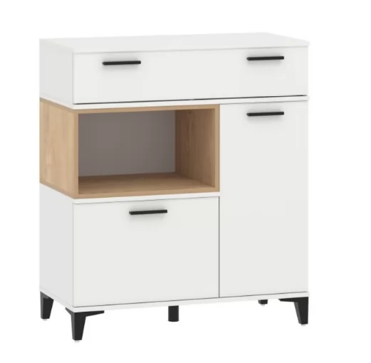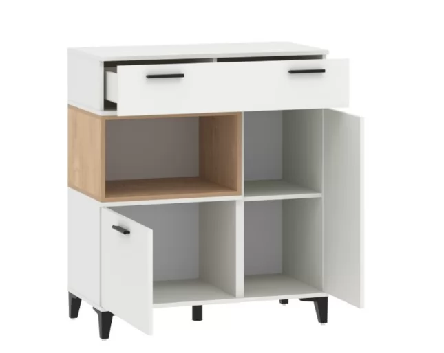 Удобная и функциональная тумба с выдвижным ящиком и двумя просторными нишами, за распашными дверями, -  незаменимый элемент интерьера любой спальни и гостиной. Корпус и фасад выполнены в современном скандинавском стиле в самых актуальных текстурах и цветах: Белый и Ясень анкор темный.  Модели с ярко выраженными элементами, в виде контрастных вставок и ручек, подойдут для светлых и темных интерьеров. Ящик оснащен механизмом полного выдвижения с шариковыми направляющими, который обеспечит бесшумное открывание ящиков и полный досмотр содержимого.  Высокие опоры придают внешнюю легкость и удобны при влажной уборке.