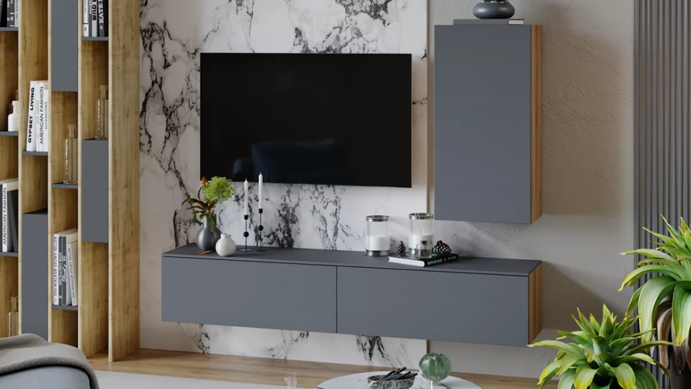 Гостиная «Порто» №5 Яблоня Беллуно, Графит софт в Сургуте