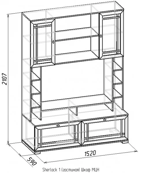Ширина (мм): 1520 Высота (мм): 2107 Глубина (мм): 590 Материал: ЛДСП Цвет: Ясень анкор светлый, Дуб сонома, Орех шоколадный Коллекция: Sherlock