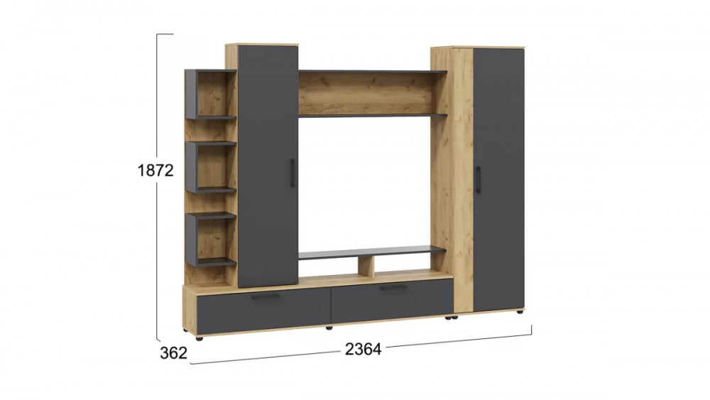 Стенка «Дакота» Дуб Крафт золотой, Антрацит в Сургуте