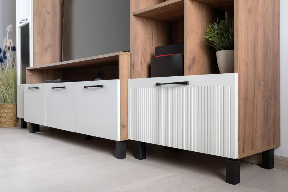 Тумба Манхеттен 13.231 будет отличным дополнением интерьера любой комнаты. Изделие поможет разместить телевизор для более комфортного просмотра новостей, сериалов и различных телепередач. Открытая ниша предназначена для необходимой аппаратуры. А три выдвижных ящика пригодятся для хранения различных вещей и предметов.