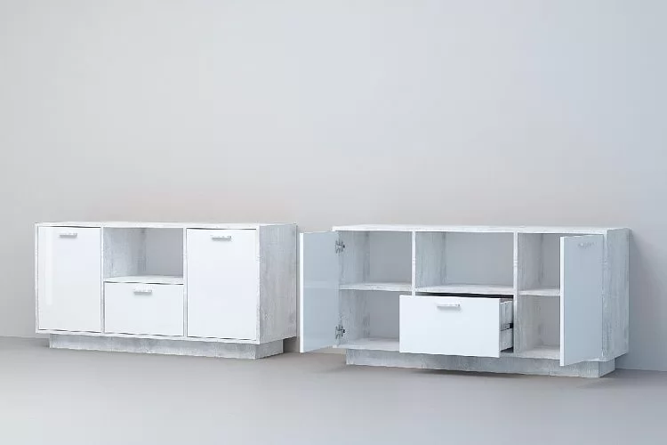 Цвет:бетон светлый/белый глянец