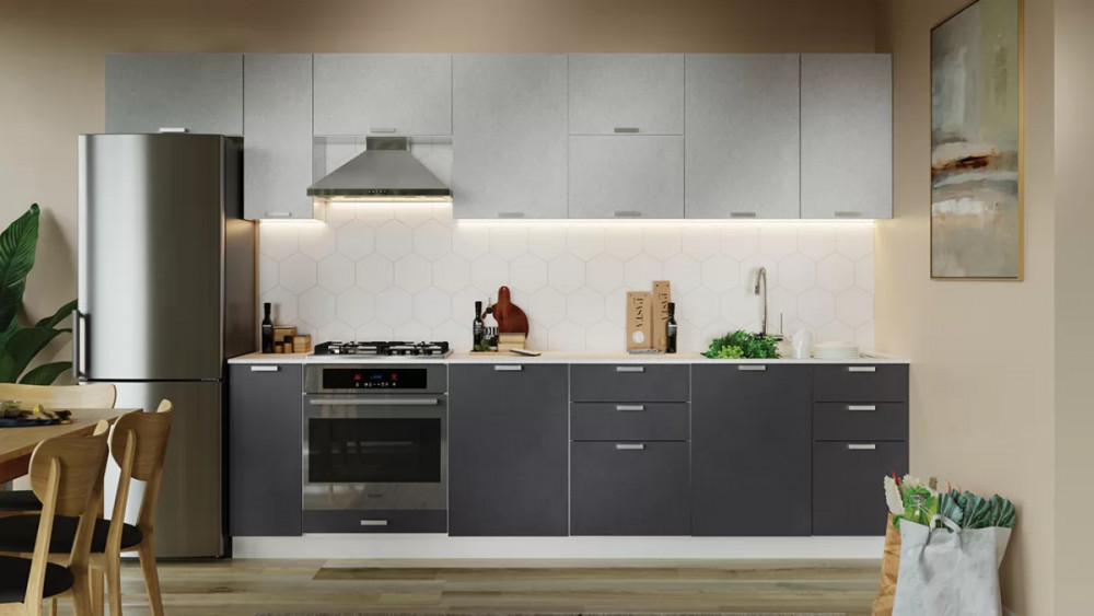 Модульная кухня «Гранита» Дуб крафт золотой/Бетон снежный/Бетон графит