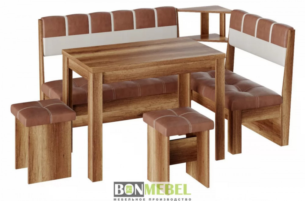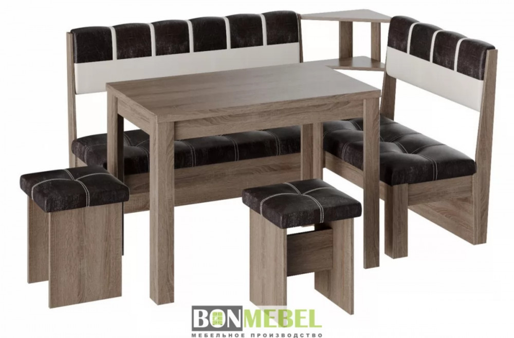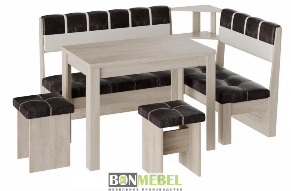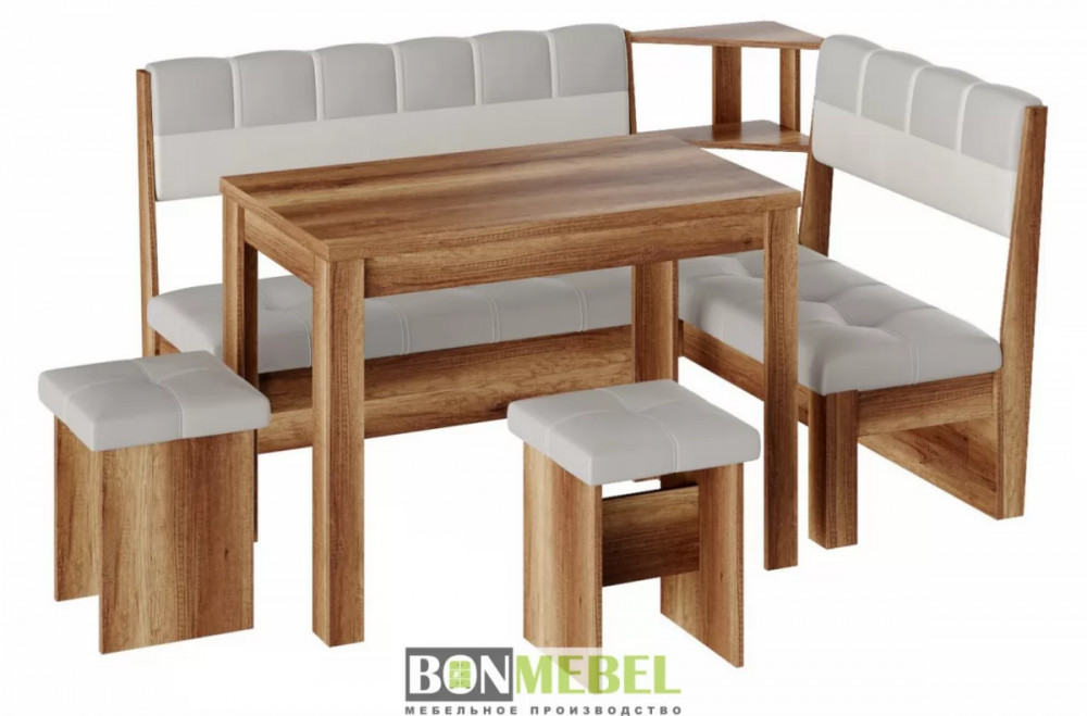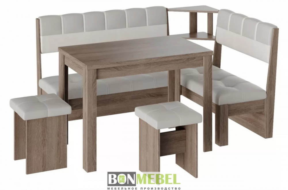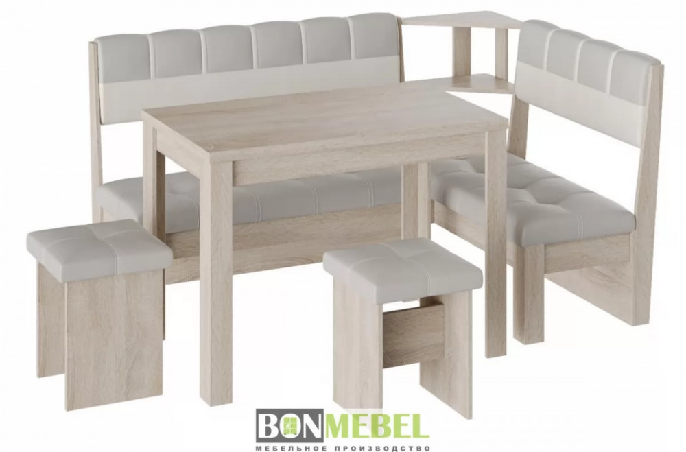 Кухонный уголок Уют 8 понравится любителям практичности и аккуратного дизайна исполнения. Изделие универсально для размещения в самых разных интерьерах. Вы сможете выбрать ориентацию угла скамьи при сборке, благодаря универсальной сборке. Конструкция предполагает наличие нескольких эргономичных полочек. Обивка из экокожи не требует специального ухода, устойчива к истиранию и загрязнениям. В качестве материала изготовления моделей используется ЛДСП.