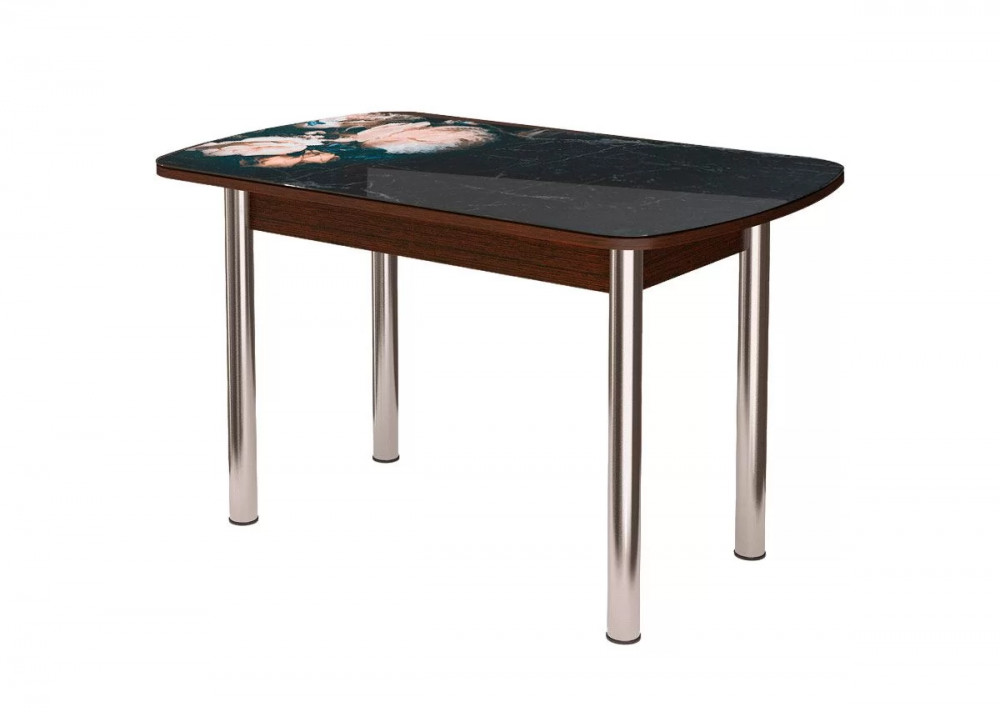 Стол Бостон, ф/п Цветы на мраморе/венге/хром брифинг в Сургуте
