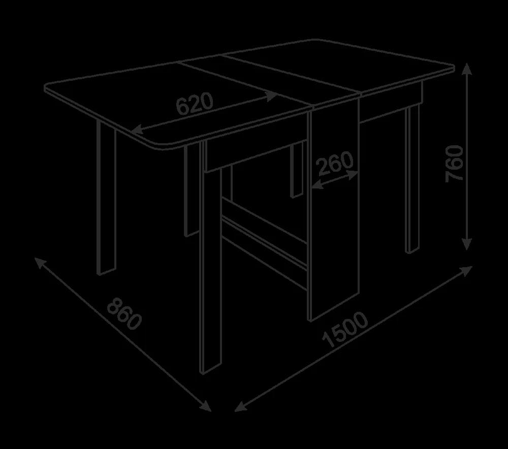 Габарит глубина: 300 мм (1500 мм в разложенном виде)