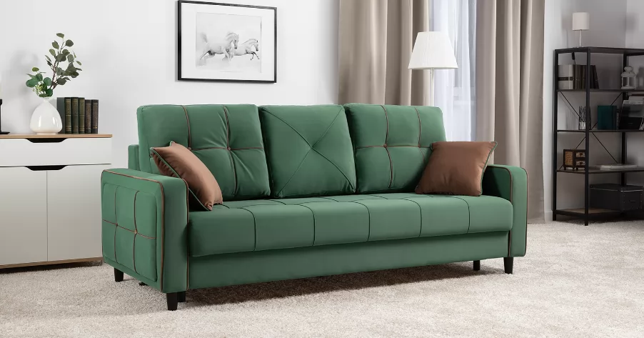 Модные диваны Черри Н порадуют поклонников современного стиля. Контрастные канты, пуговицы и декоративные подушки делают этот диван ярким акцентом интерьера.