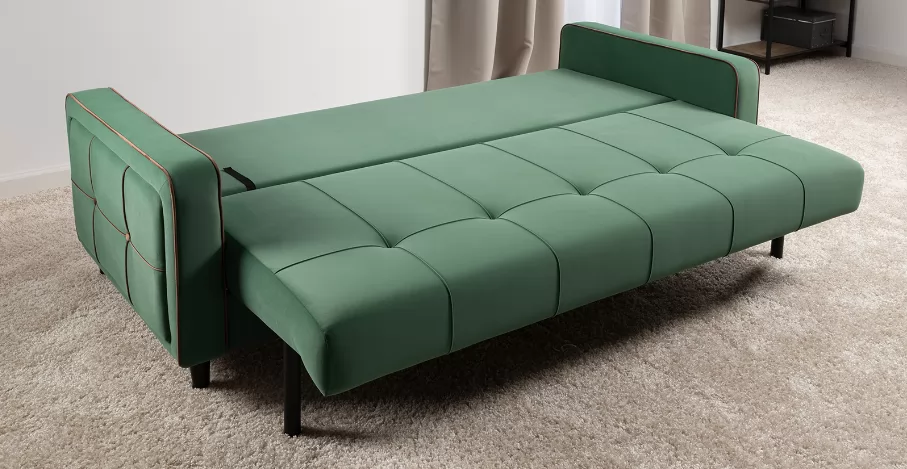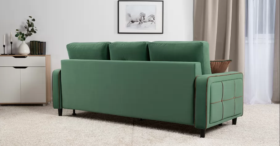 ДВПоОснование сиденья: ППУ на блоке плоских пружин "змейка"Приспинные подушки, шт:  3Съемные чехлы приспинных подушек:  естьДекоративные подушки, шт:  2Наполнитель подушек:  крошка ППУ и полиэфирное волокно «шарики»Материал опор:  лакированное деревоВысота опор (мм):  120