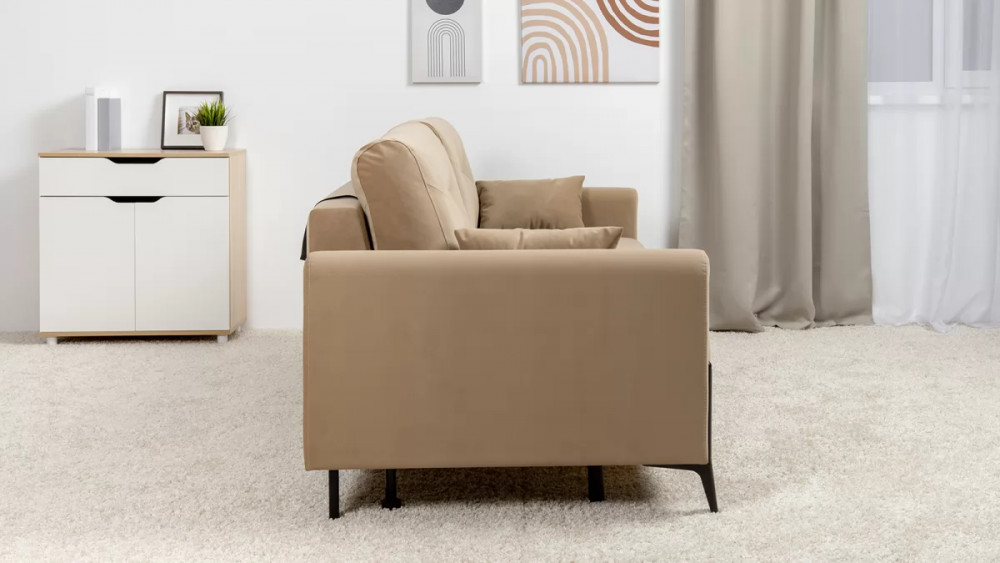 Барселона — современный диван, стиль которого удачно подчеркнут элегантными металлическими опорами. Диван выглядит привлекательно со всех сторон.