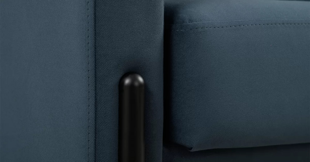 • Металлические опоры плавно переходят в декоративный элемент подлокотника. Декоративная утяжка по приспинным подушкам