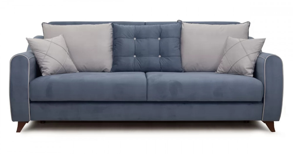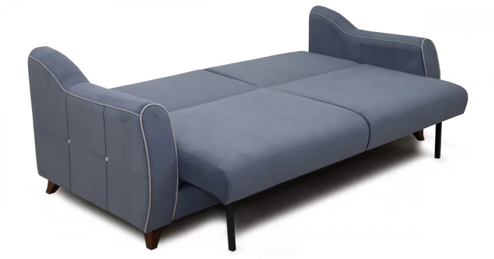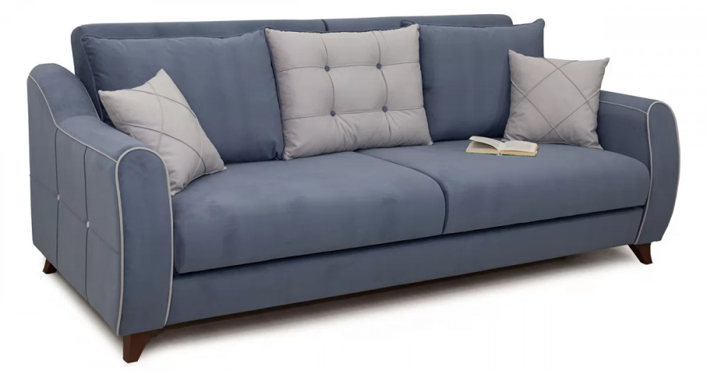 Френсис Диван-кровать арт. ТД 263Габаритысложенный (Д x Г х В, мм): 2280 x 1030 x 900спальное место (Д x Ш, мм): 1950 x 1310высота посадки (мм): 480глубина сиденья (мм): 570максимально допустимая нагрузка: 80 кг на одно посадочное место, 100 кг на одно спальное местоМеханизм трансформацииКнижка с 0 стенойБельевой ящикестьс перегородкой по центру (2 отделения)размер отделения (Д x Ш, мм):  890 x 840 x 200Варианты исполнения5 артикуловсочетание тканей только как на фотоМатериалыосновная ткань: Амиго (велюр)выполняется в тканях: Амиго нэви (серо-синий), Амиго эш (светло-серый)каркас: фанера
