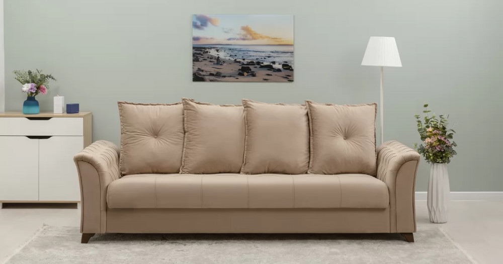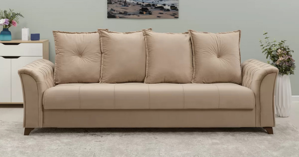 Габаритысложенный (Д x Г х В, мм): 2450 x 1060 x 890спальное место (Д x Ш, мм): 1950 x 1310высота посадки (мм): 460глубина сиденья (мм): 540максимально допустимая нагрузка: 80 кг на одно посадочное место, 100 кг на одно спальное местоМеханизм трансформации-Книжка с 0 стенойБельевой ящик-есть  перегородкой по центру (2 отделения)размер отделения (Д x Ш, мм): 890 x 840 x 200каркас: фанерадеревянный брус