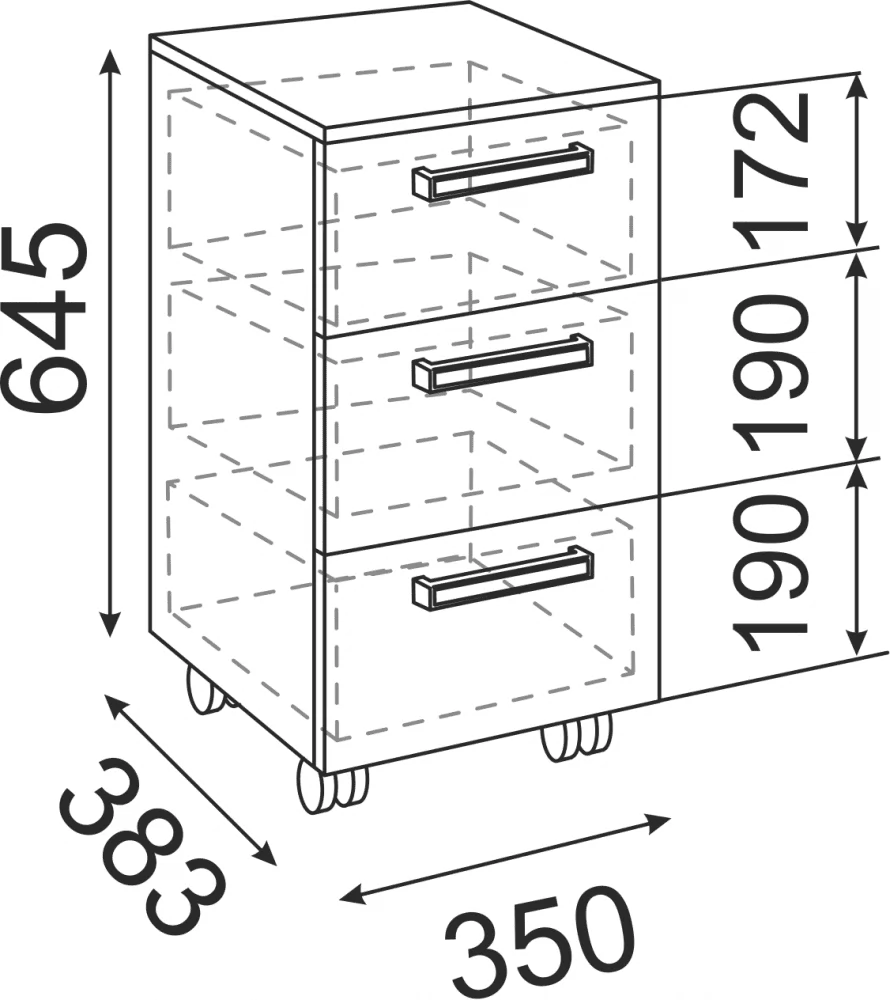 Размеры: Габарит ширина: 350 мм Габарит глубина: 383 мм Габарит высота: 640 мм Ящик (кол-во, габарит, нагрузка): 120х261х334мм-3 шт. Рекомендуемый матрац (габариты): до 13 кг Зеркало (размеры, обработка): 65 мм