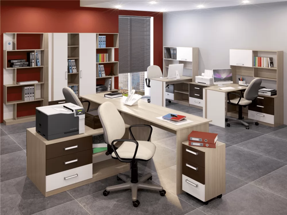 Тумба компонуется со Столом прямым М08 и позволяет освободить рабочее пространство на нем.
