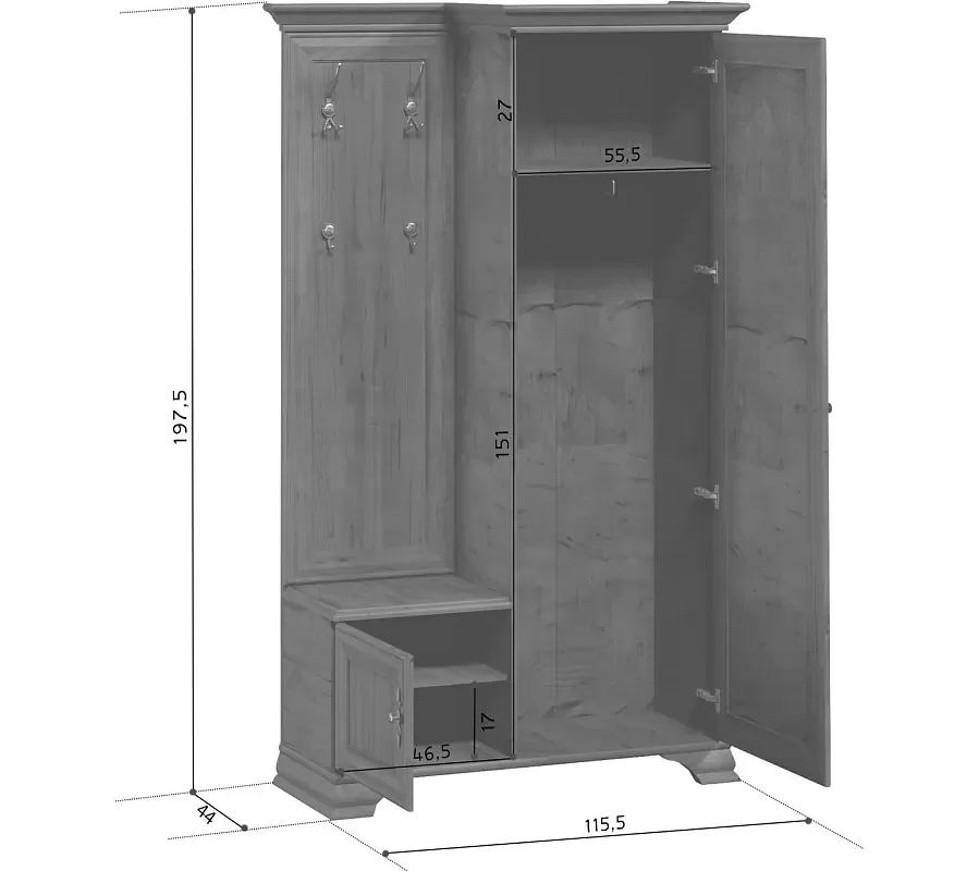 *Размеры (ШхВхГ), мм:1150*1975*440 мм