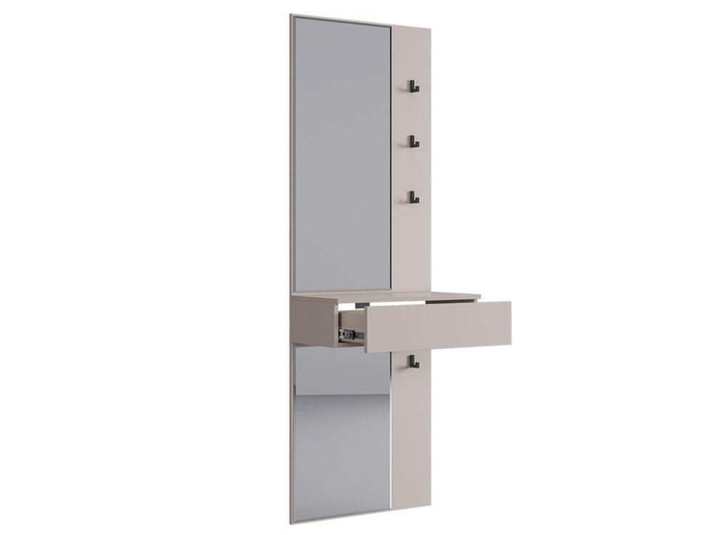 Крючки предоставляют удобное место для хранения сумок или аксессуаров. Выкатной ящик служит дополнительным пространством для хранения мелочей, таких как ключи, кошелек, косметика или другие небольшие предметы.
