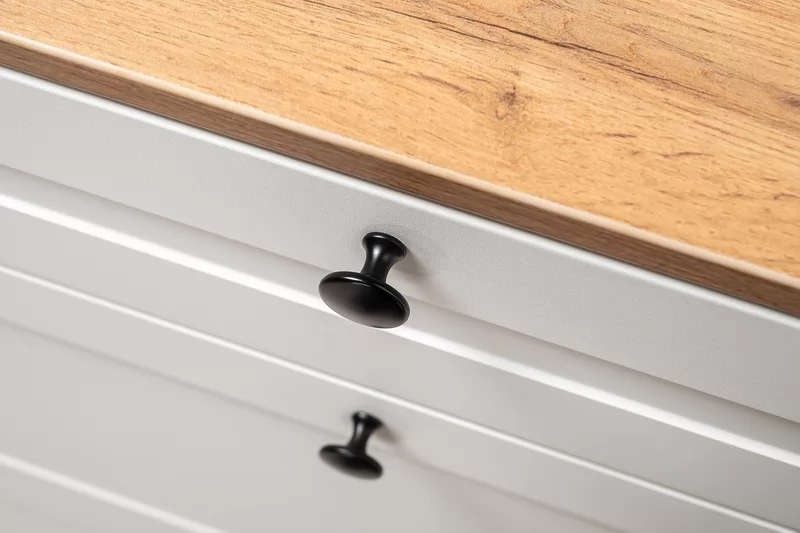 Прихожая доступна в двух цветовых решениях – белый/графит в сочетании с теплым древесным декором.