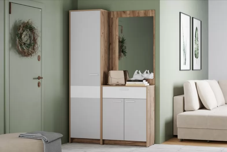 Эргономичная мебель "Нортон" не будет загромождать помещение, а преобладание светлых оттенков значительно расширяет комнату. Выразительность помещению можно внести яркими акцентами и контрастными тонами.