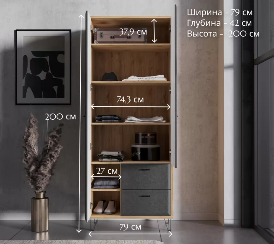 Размер (ШxВxГ):790x2000x420 мм
