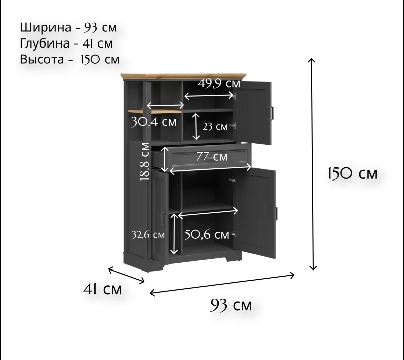 Размер (ШxВxГ):930x1500x410 мм