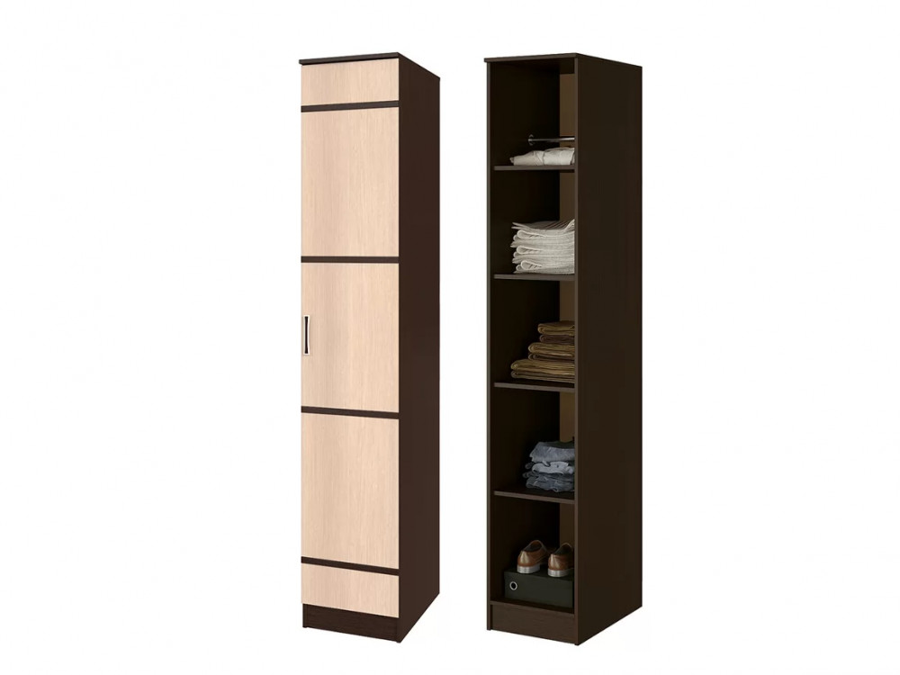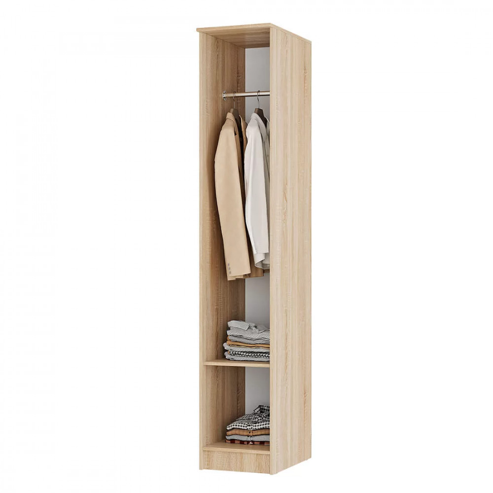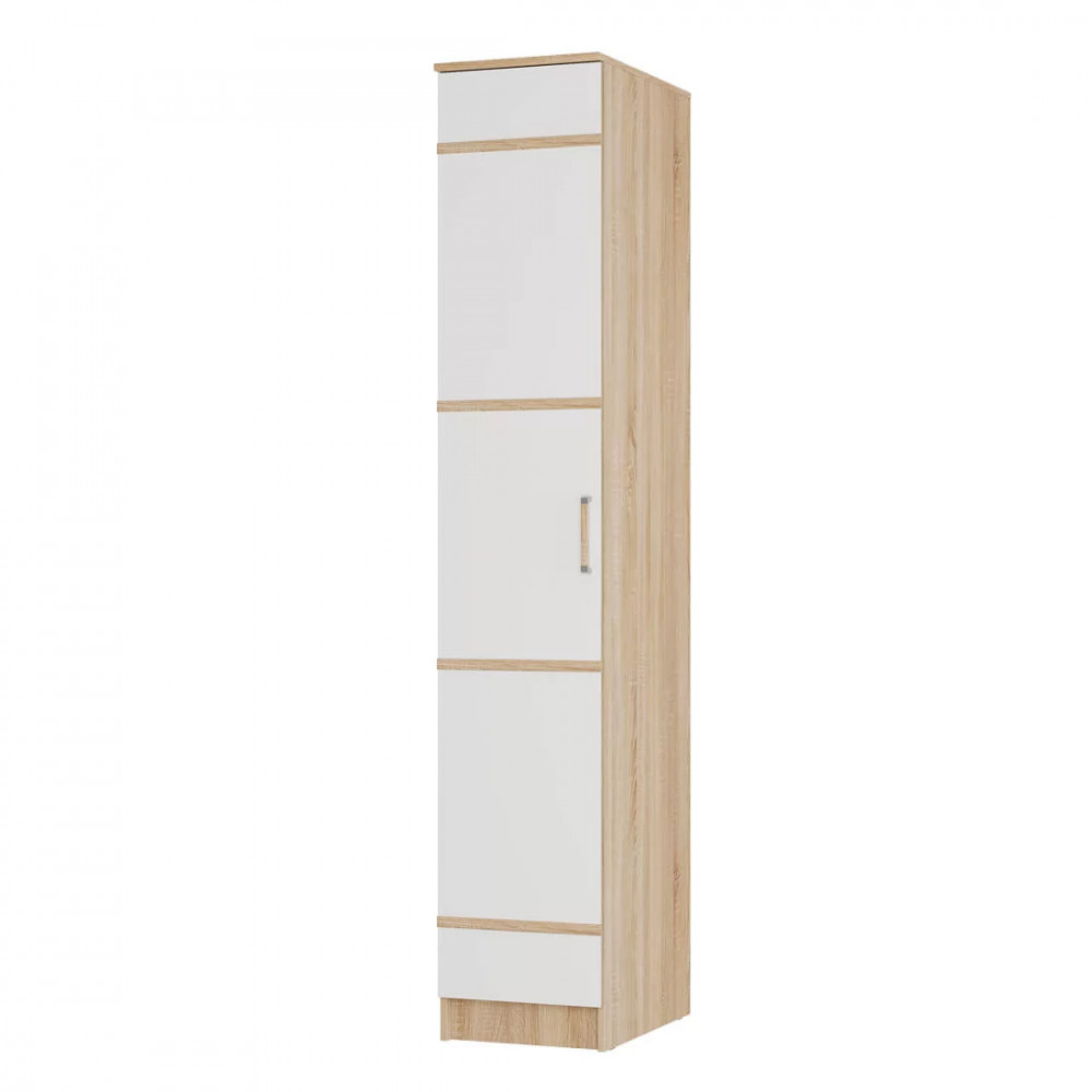 Модель из классического сочетания двух цветов ЛДСП сонома и белый с лёгкостью впишется в современный интерьер. Внутреннее наполнение изделия представляет собой пять вместительных полок, на которых можно разместить предметы гардероба или постельные принадлежности. Кроме того, в комплект входит продольная штанга, поэтому пенал Сакура станет отличным дополнением композции мебели для прихожей (в этом случае полки не устанавливаются).