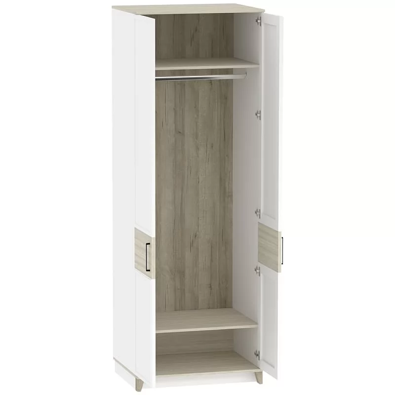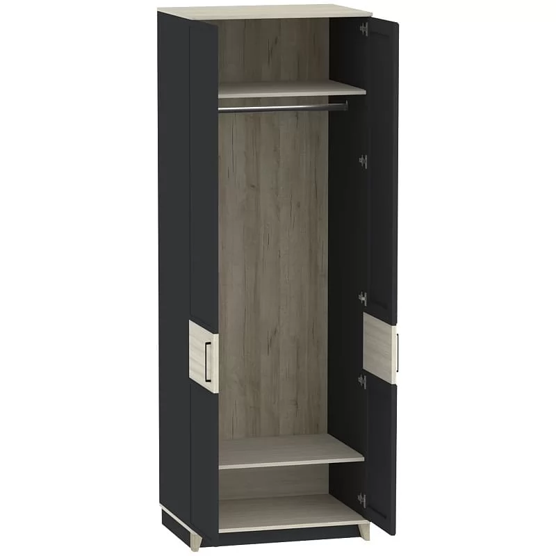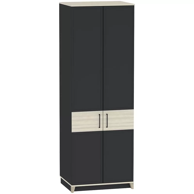 Ширина (мм): 800 Высота (мм): 2308 Глубина(мм): 600 Материал корпуса: ЛДСП Цвет: Белый-Блеквуд Сатиновый,Антрацит-Блеквуд Сатиновый Металлические ручки Рамочные фасады из профиля МДФ Стационарная штанга для одежды