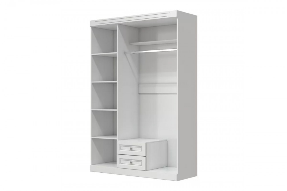 Глубина-516 мм Ширина-1509 мм Высота-2227 мм Срок службы-7 лет Гарантийный срок-18 месяцев Монтаж-Требует сборки Фрезеровка фасада-Да Материал фасада-МДФ Материал корпуса-ЛДСП Количество дверей-3 шт Фурнитура-Шариковые направляющие полного выдвижения, Штанга для одежды Коллекция-Спальня «Олимп» Белый Цвет корпуса-Белый Цвет фасада-Белый лак Количество выдвижных ящиков-2 шт Фасады с древесной или текстурной поверхностью-Да Корпус с древесной или текстурной поверхностью-Да