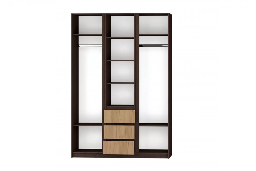 Стильный и современный дизайн шкафа. Шкаф имеет 2 отделения для размещения одежды на плечиках и отделение с полками. У шкафа есть 3 ящика на направляющих полного выдвижения (400 мм). Ширина (мм): 1500 Глубина (мм): 523 Высота (мм): 2200 Материал корпуса: ЛДСП Материал фасада: ЛДСП Кромка: ПВХ 0,4 мм Тип петли: накладная Зеркало: еврокромка Ручки: интегрированные Направляющие: шариковые Глубина ящиков: 400 мм Вес, кг: 145 Объем, м3 0,265 Количество упаковок: 3 Ориентация сборки: левая/правая Производство: г. Пенза Гарантийный срок: 24 месяца Срок службы: 10 лет