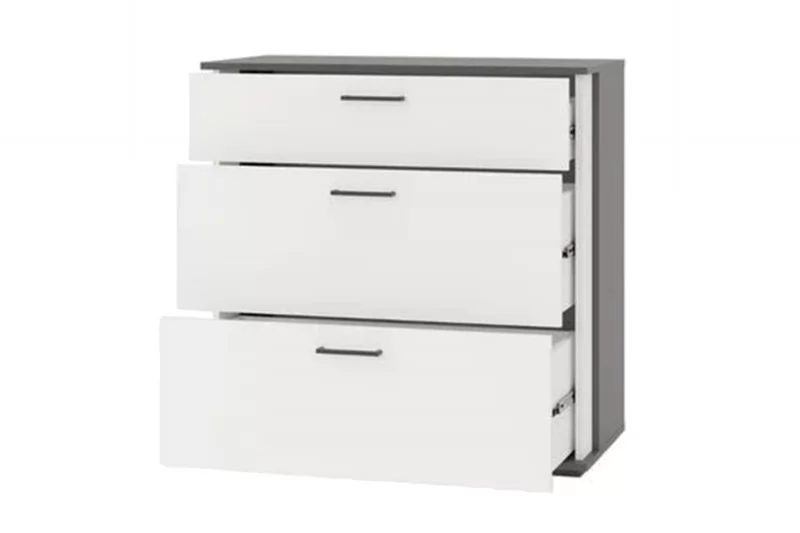 Эстетика: Цвет Графит Белый придает комоду элегантный и изысканный вид, который легко сочетается с другими элементами интерьера.