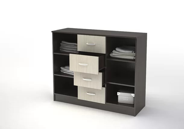 • Функциональная система хранения: четыре ящика и два больших отделения с распашными дверцами