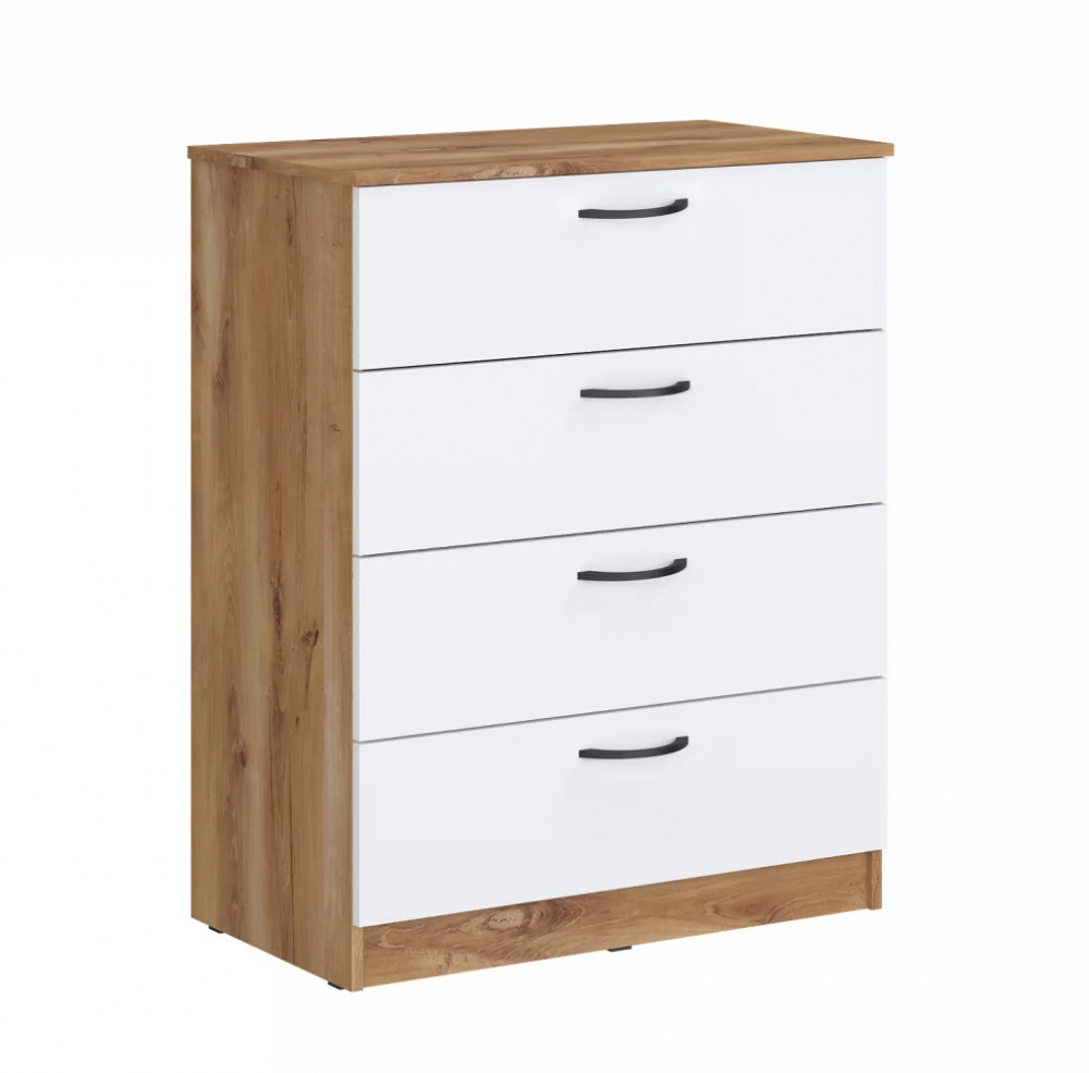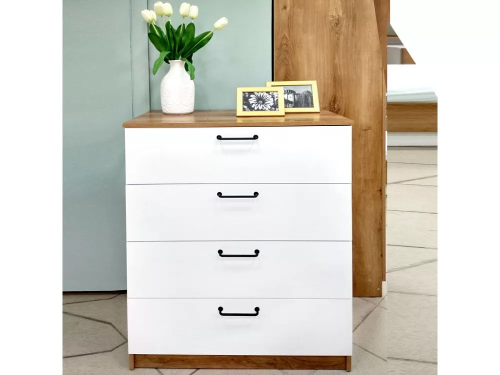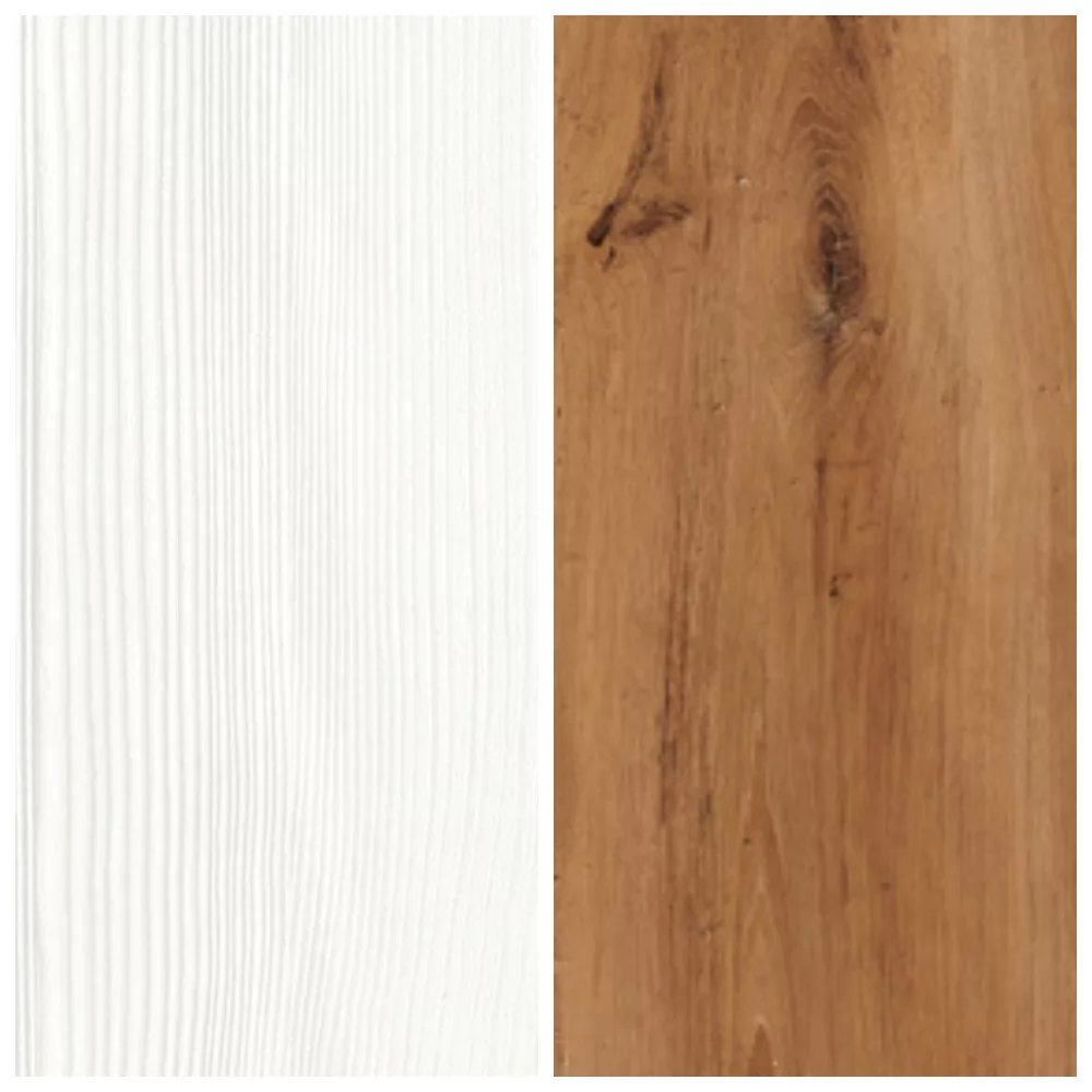 Контрастное сочетание белоснежного цвета и богатого древесного оттенка делает интерьер современным, стильным и свежим.