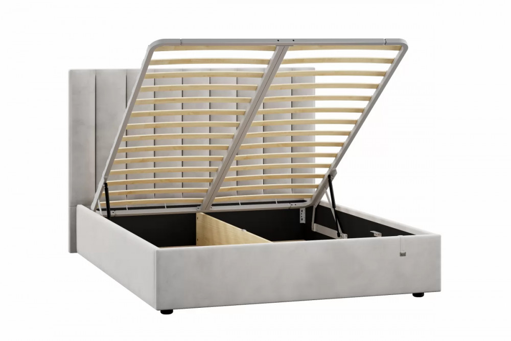 Подъемный механизм легок в управлении, а вместительный короб внутри кровати подойдет для хранения подушек, белья и других вещей. Мягкие тканевые ручки облегчают процесс подъема основания.