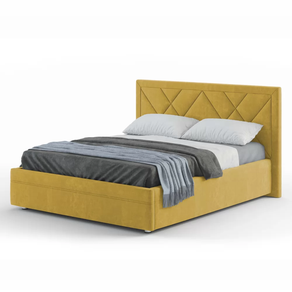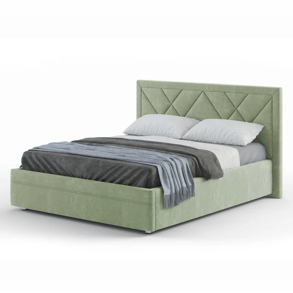 Эксклюзивная модель с мягким изголовьем, украшенным трендовым геометрическим дизайном. Такая модель на сегодняшний день пользуется большой популярностью у покупателей. Обладает всеми основными преимуществами, которые присутствуют у популярных моделей Marta и Jessica, т.е.: полный набор доступных опций, малый и большой ортопедический настил, сплошной настил из ЛДСП, комплектация подъемным механизмом.