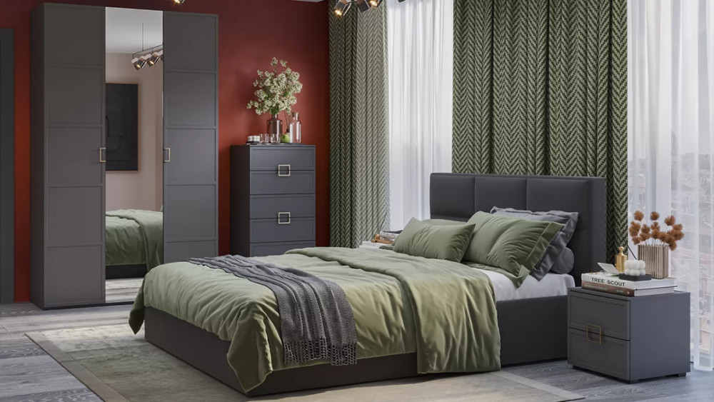 Спальный гарнитур «Стелла» №3 Серый вулкан, Фон серый, Велюр Графит в Сургуте