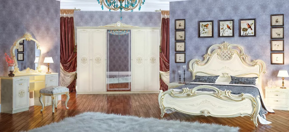 Кровать «Грация» будет украшением вашей спальни в  {{in_city}}. Кровать выполнена в традиционном классическом стиле дворцовых интерьеров. Вся красота резного изножья гармонично повторяется в плавных линиях изголовья. Изготавливается в двух вариантах – изысканном цвете белой кости и королевском тайском орехе. Идеально подойдет для просторной спальни. Композицию составят прикроватные тумбы, туалетный столик с зеркалом и пуфом. В коллекции также есть шкафы. Дополнительно приобретается ортопедическое основание и матрас.