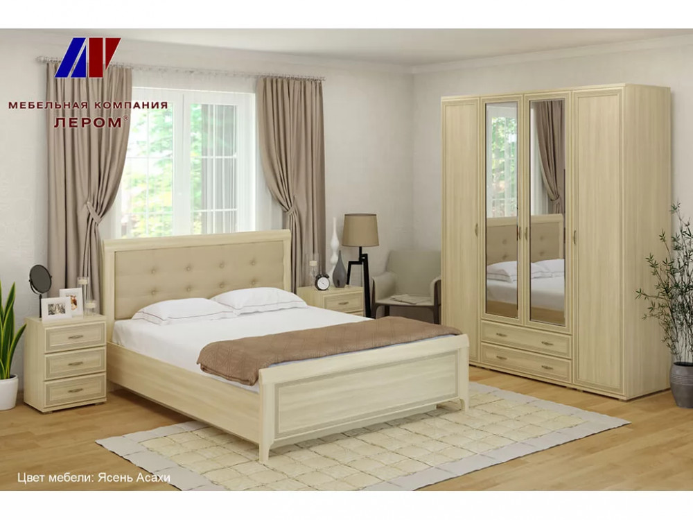 Кровать с мягким изголовьем КР-1014 1800х2000 Ясень Асахи