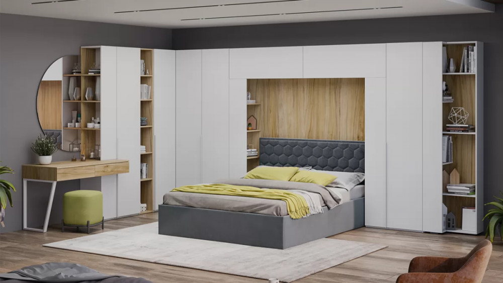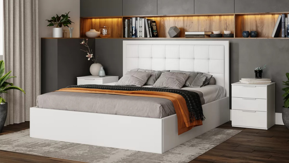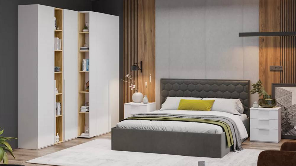 Спальня «Порто» Белый Жемчуг, Яблоня Беллуно, Белый софт в Сургуте