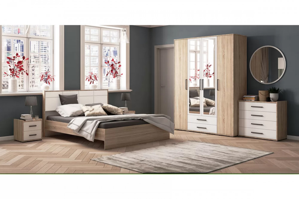 • Корпус ЛДСП Дуб Сонома, Фасад ЛДСП Белый с тиснением «Древесные поры», ЛДСП Дуб Сонома