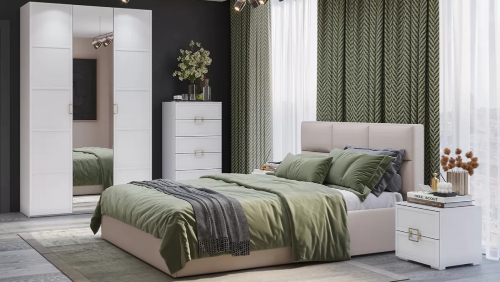 Спальня «Стелла» Белый холст, Белый Жемчуг в Сургуте