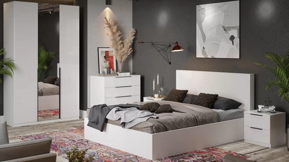 Назначение: Мебель для хранения Зеркало: Да Комната использования: Спальня Материал кромки каркаса: ПВХ Цвет ручки: Черный Стиль: Современный Тип: Модульная спальня Расположение: Напольный Тип направляющих ящиков: Шариковые Материал каркаса: ЛДСП Материал ручек: Металл Производство: Россия Модель: Тесса Материал фасада: МДФ Цвет: Белый Жемчуг, Белый глянец Наличие механизма раскладки: Нет Наличие спального места: Нет