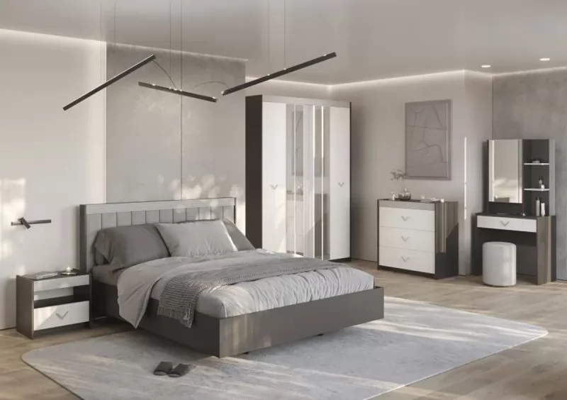 СТЕФАНИ Спальня №1, ЛДСП Графит-МДФ Серый софт/ЛДСП Рамух белый в Сургуте