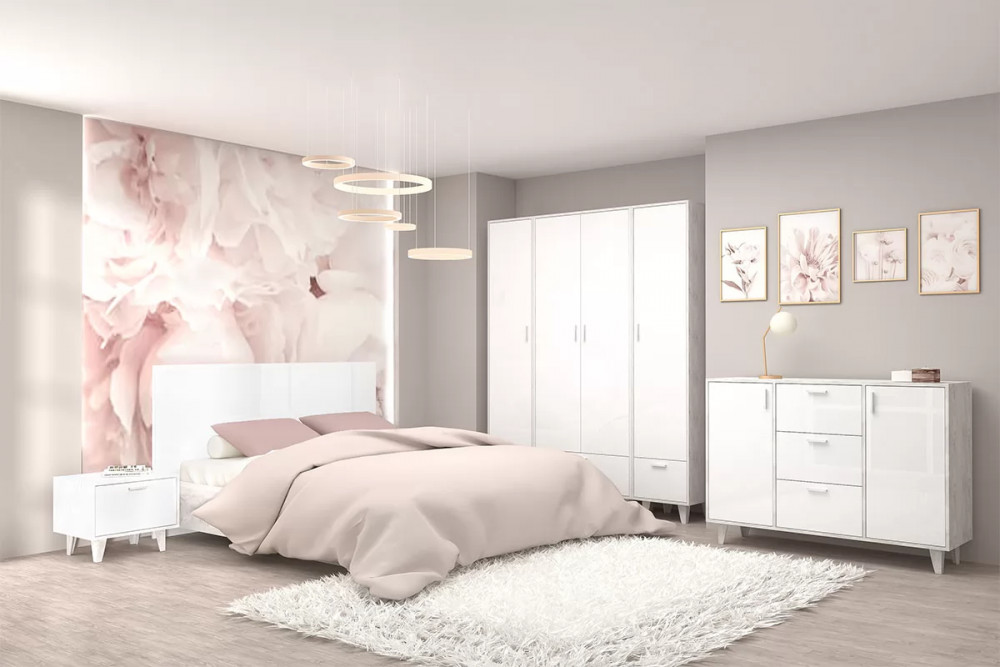 Цвет:бетон светлый/белый глянец