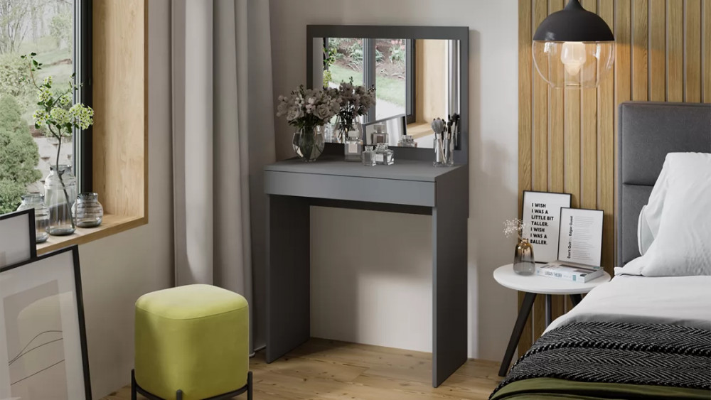 Назначение: Мебель для работы и приема пищи Отсек для хранения: Да Зеркало: Да Гарантийный срок: 24 месяца Комната использования: Спальня Материал кромки каркаса: ПВХ Стиль: Современный Стекло: Нет Тип: Туалетный столик с зеркалом Расположение: Напольный Тип направляющих ящиков: Шариковые Материал каркаса: ЛДСП Производство: Россия Габаритная ширина: 675 Габаритная высота: 1 250 Форма предмета: Прямоугольный Габаритная глубина: 376 Количество ящиков: 1 Модель: Никки Срок службы: 5 лет Материал фасада: ЛДСП Оттенок: Серый Цвет: Серый Цвет каркаса: Серый Цвет фасада: Серый Оттенок каркаса: Серый Оттенок фасада: Серый Материал столешницы: ЛДСП Наличие механизма раскладки: Нет Наличие спального места: Нет