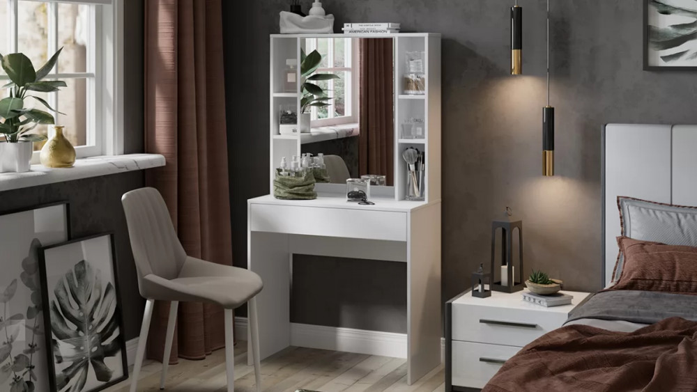 Назначение: Мебель для работы и приема пищи Отсек для хранения: Да Количество дверей: 1 Зеркало: Да Гарантийный срок: 24 месяца Комната использования: Спальня Материал кромки каркаса: ПВХ Стиль: Современный Тип: Туалетный столик с зеркалом Расположение: Напольный Тип направляющих ящиков: Шариковые Материал каркаса: ЛДСП Дополнительная информация: Размер двери с зеркалом 680х474 мм. Производство: Россия Габаритная ширина: 800 Габаритная высота: 1 528 Форма предмета: Прямоугольный Габаритная глубина: 404 Количество ящиков: 1 Количество полок ЛДСП: 6 Модель: Салли Срок службы: 5 лет Материал фасада: ЛДСП Оттенок: Белый Цвет: Белый Цвет каркаса: Белый (поры дерева) Цвет фасада: Белый (поры дерева) Оттенок каркаса: Белый Оттенок фасада: Белый Тип сборки: Не универсальный Заглушина для ящика кровати в комплекте: Нет Наличие механизма раскладки: Нет Наличие спального места: Нет