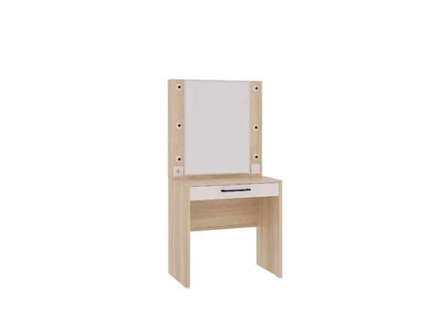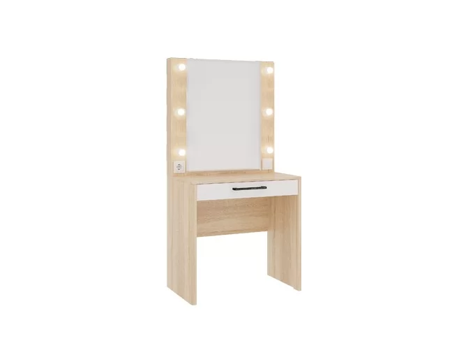 Стильное трюмо «Зара» станет прекрасным дополнением спальни или комнаты девочки-подростка, оно дополнит женский уголок, сделает его удобным, функциональным и современным. У трюмо «Зара» в {{in_city}} предусмотрена подсветка, благодаря которой вы сможете нанести макияж, даже самый сложный и профессиональный, в любое время суток: равномерная подсветка естественно освещает лицо и делает процесс нанесения косметики приятным и удобным. Также в этой модели предусмотрены розетка, выдвижной ящик, в котором можно хранить косметику или украшения.